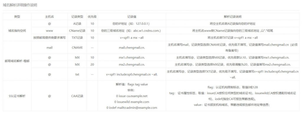 1.在域名供应商处把域名和IP地址做相互映射设定,通常给申请到的主机空间IP和域名做A记录,有时候第三方为了验证你是否拥有某个域名,会要求填特定的记录类型和记录值